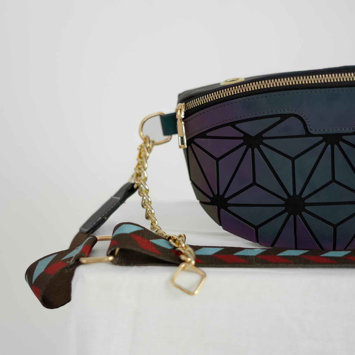 - LuminGlow Crossbody: Stylische Umhängetasche mit einzigartigem Muster.